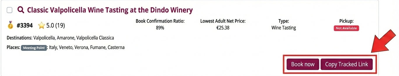 On every experience returned by the system, then, you can click on "Copy Tracked Link" button. That's it!